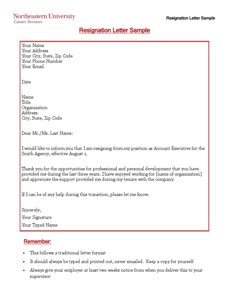 Best Sample Resignation Letter