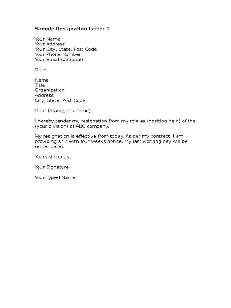 Sample Resignation Letter Simple